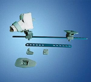 Caratteristiche: Tutore ortopedico realizzato per la correzione delle deformità del piede TIBAX é un’ortesi fondata sul sistema di Denis Browne il quale consente un rapido e preciso controllo e correzione della rotazione di entrambi i piedi, mediante una speciale chiave quadrangolare che viene fornita con l’ortesi. Tibax permette l’applicazione della scarpa su ciascuna delle due piattaforme o l’ancoraggio diretto della scarpina BEBAX, in modo da poter agire simultaneamente sulle malformazioni della parte anteriore del piede. Tibax é prodotto in alluminio anodizzato, leggero e facile da applicare. Indicazioni: – esiti di trattamento del piede torto congenito – correzione della rotazione tibiale – piede addotto – antiversione del collo femorale e nel conseguente metatarso varo – deambulazione con piede intrarotato – lievi displasie dell’anca (permette l’abduzione degli arti inferiori) – mielomeningocele Taglie disponibili: Distanza dal centro delle scarpe Minima Massima Barra corta cm 5,5 cm 20,5 Barra lunga cm 20,5 cm 35,5