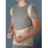 Busto ortopedico spallaccio a trazione antero-posteriore per la stabilizzazione e lo scarico del rachide dorso-lombare, con telaio rigido di rinforzo