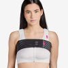 Totalmente latex-free, la fascia seno Revée® Belt è pensata per stabilizzare le protesi mammarie nelle prime settimane post-operatorie, applicandola sopra il reggiseno a compressione (Julie, Laetitia o Elodie), come mostrato nelle immagini.