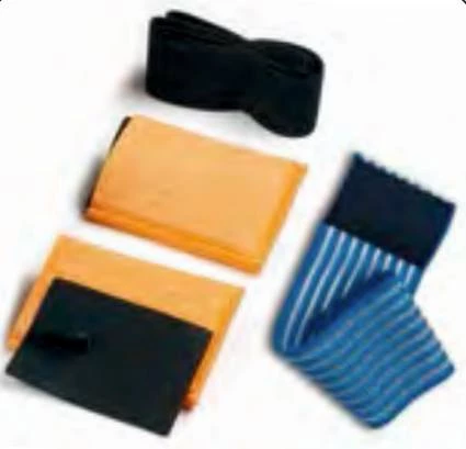 Kit per ionoforesi composto da 2 elettrodi in silicone 60×80 mm con presa femmina da 2 mm, 2 spugne porta elettrodo, 1 fascia elastica