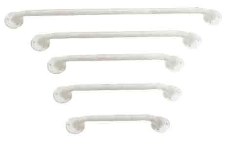 Maniglie da muro di sicurezza con viti, montabili in orizzontale, in verticale o in diagonale, a seconda della necessità, realizzate in tubo di acciaio di 2,54 cm di diametro, verniciato di bianco. Disponibile in varie lunghezze.