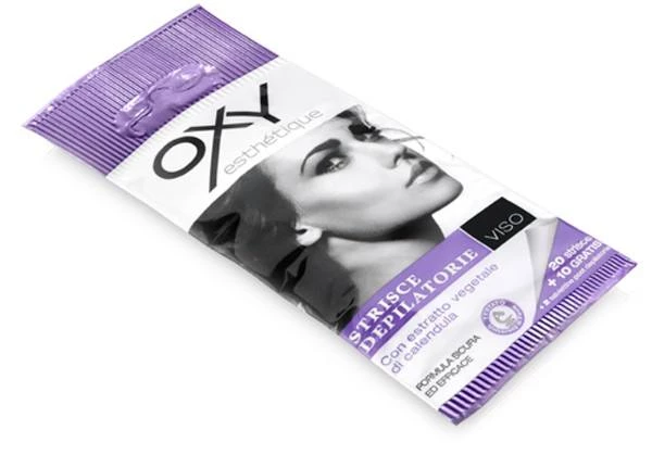 Oxy Strisce Depilatorie Viso eliminano i peli superflui, in modo duraturo e deciso, con una nuova formula all’estratto vegetale di calendula su supporto di tessuto non-tessuto, per un’applicazione precisa e flessibile. Si adattano perfettamente alla parte da depilare, garantendo la sicurezza di uno strappo deciso e duraturo. Incluse ci sono delle pratiche salviettine monouso all’olio di azulene, da utilizzare dopo la depilazione che, oltre a rimuovere eventuali residui di cera, lenisce e dà sollievo alla pelle. Contenuto 30 pezzi Contenuto della confezione 15 doppie strisce 2 salviettine post depilatorie Modo d’suo 1 Riscaldare leggermente la doppia striscia strofinandola fra le mani per circa 30 secondi. 2 Separare lentamente e gradualmente i due lembi ottenendo due strisce. 3 Applicare una singola striscia sulla parte da depilare stendendola nella direzione di crescita dei peli fino a farla aderire bene. 4 Tenere con una mano la pelle distesa dalla parte opposta allo strappo che deve avvenire con un movimento rapido e deciso in direzione contraria alla crescita dei peli. Se necessario ripetere l’operazione. Ingredienti STRISCE: Glyceryl Rosinate, Paraffinum Liquidum, Cera Microcristallina, Calendula officinalis Extract, Caprylic/Capric Triglyceride. POST DEPILATORIO: Paraf- finum Liquidum, Zea Mays Oil, Parfum, Cinnamyl Alcohol, Amyl Cinnamal, Hexyl Cinnamal, Citronellol, Geraniol, Isoeugenol, Linalool, BHA, BHT, Hexylene Glycol, Guaiazulene, CI 60725