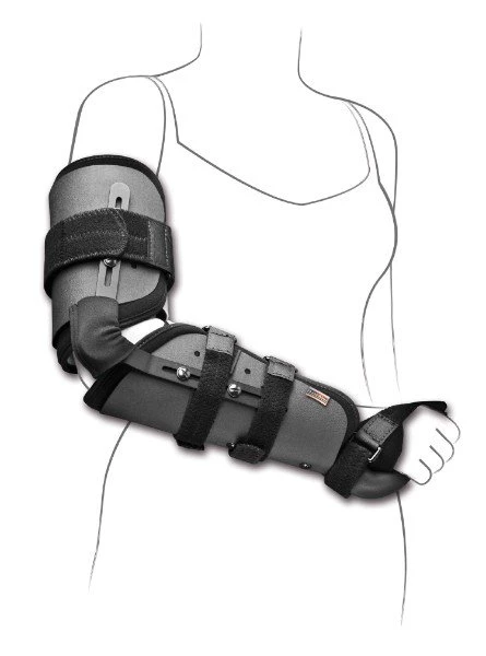 TUTORE PER GOMITO TENORTHO E-MOTION E’ un tutore ortopedico per gomito progettato per garantire il massimo controllo dell’articolazione del gomito. Grazie alla struttura caratterizzata da valve in materiale plastico e alle aste in alluminio (regolabili in flesso-estensione), si ha il completo controllo dell’articolazione. Il tutore si adatta perfettamente all’anatomia del corpo procurando un piacevole senso di sicurezza e benessere. Inoltre é dotato di elementi aggiuntivi: un supporto per la mano che permette la prono-supinazione ed una fascia in tessuto, utilissima a sostenere il braccio durante il periodo di convalescenza.. Taglia S M L circonferenza mediana omerale in cm 20/30 30/38 38/49 Posizionamento Ambidestro Colore Nero CARATTERISTICHE TUTORE PER GOMITO TENORTHO E-MOTION Ambidestro. Valve in plastica di supporto (omero e avambraccio). Imbottiture traspiranti con rivestimento in tessuto assorbente. Aste articolate in alluminio (regolabili).Regolazione della flesso-estensione di 30°in 30°. Tiranti di chiusura a Velcro. Supporto mano per prono-supinazione(regolabile o asportabile). Cinghia di supporto. Leggero. INDICAZIONI TUTORE PER GOMITO TENORTHO E-MOTION post-operatorio controllo movimento di flesso-estensione controllo prono-supinazione trattamenti conservativi post-rimozione gesso. MANUTENZIONE TUTORE PER GOMITO TENORTHO E-MOTION Lavare a mano in acqua tiepida, con sapone neutro; risciacquare accuratamente. Asciugare lasciando lontano da fonti di calore. Rivolgersi al proprio tecnico ortopedico, in caso di problemi o componenti usurate da sostituire. Non disperdere nell’ambiente. PRECAUZIONI D’USO TUTORE PER GOMITO TENORTHO E-MOTION Il dispositivo non deve creare pressioni su parti del corpo che presentano ferite, gonfiori o tumefazioni. Rivolgersi al tecnico ortopedico, nel caso ci fossero dubbi sull’applicazione. Non indossare il dispositivo in vicinanza di fiamme libere. AVVERTENZE TUTORE PER GOMITO TENORTHO E-MOTION Il dispositivo deve essere prescritta dal medico e applicata da un tecnico ortopedico, che é la figura competente di riferimento sia per l’applicazione sia per le informazioni ad un uso sicuro. L’applicazione deve essere effettuata con la massima cura, così da garantire l’efficacia, la tollerabilità e il corretto funzionamento. Eventuali modifiche strutturali o di altro genere, devono essere decise dal medico ed eseguite dal tecnico ortopedico. Si consiglia l’uso personale del prodotto. Il contatto diretto del dispositivo con la pelle potrebbe causare rossori o irritazioni a persone molto sensibili. Rivolgersi immediatamente al proprio medico in caso di intollerabilità.